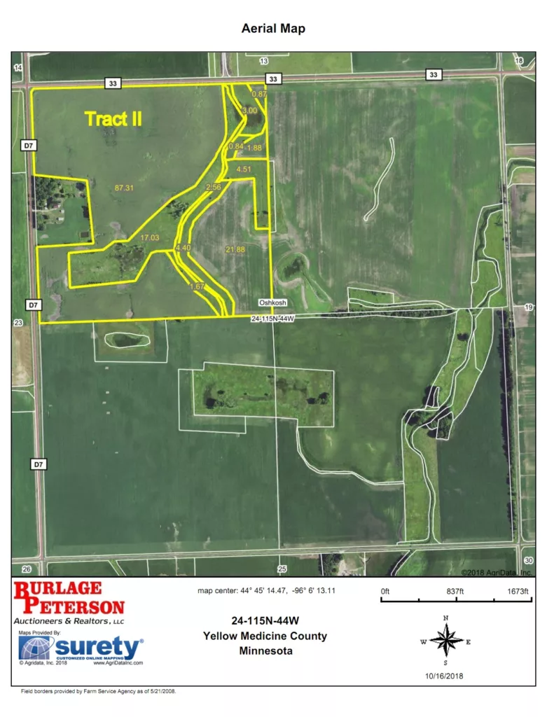 Legal Description: NW ¼ Less S 667’ of N 1693’ of W 654’ of Section 24, T-115-N, R-44-W, Oshkosh Twp., Yellow Medicine Co., MN.