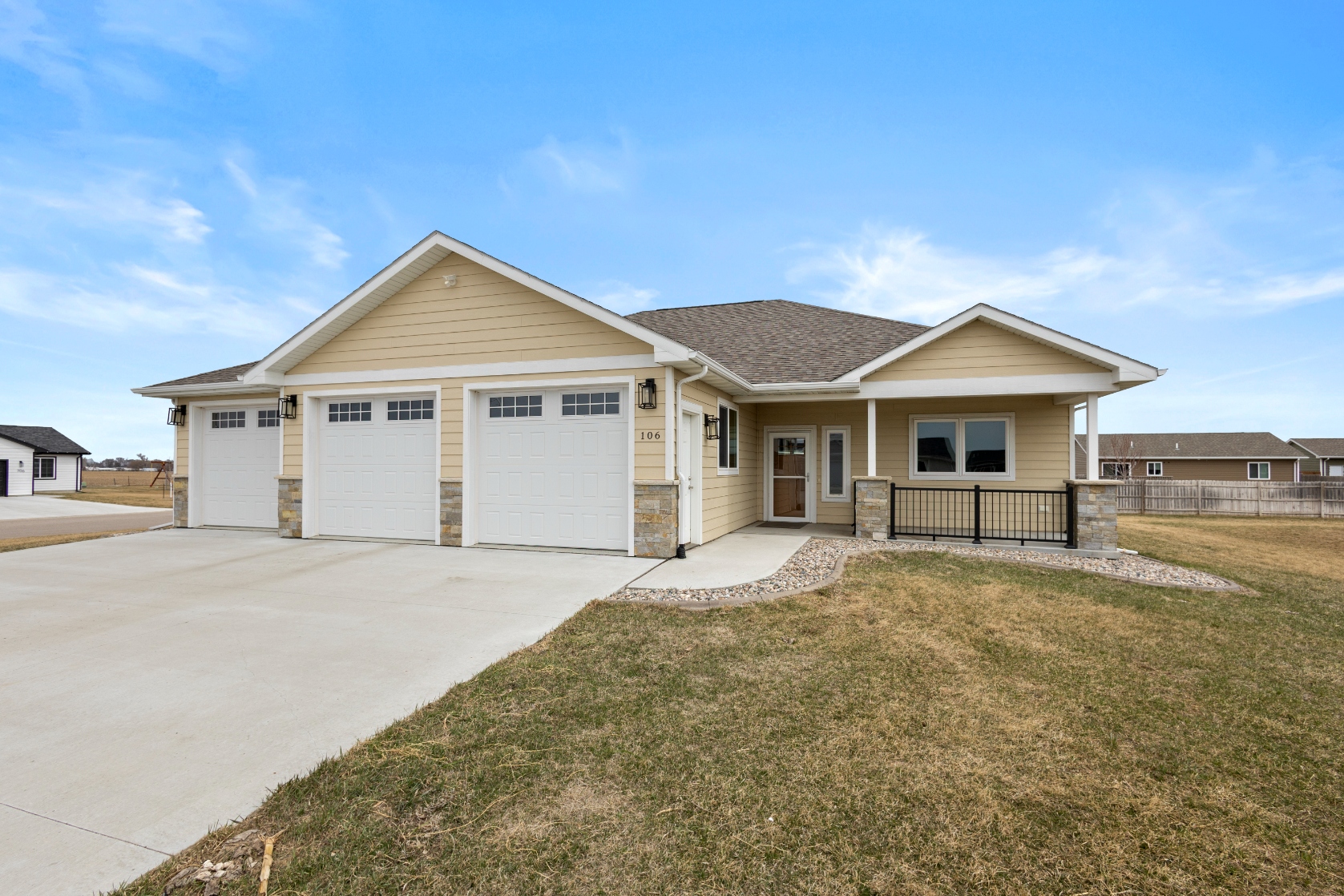 Beautiful home in Volga, SD 5 Bedroom, 3 Baths - Ranch Home - Open Floorplan - 3 Stall Garage - Built in 2022, 3,300 Sq.Ft. - Finished Living Area. This home is in the newer western part of Volga, and only minutes from Brookings and South Dakota State University, it's small town living at its best! Call to set up your showing today!!